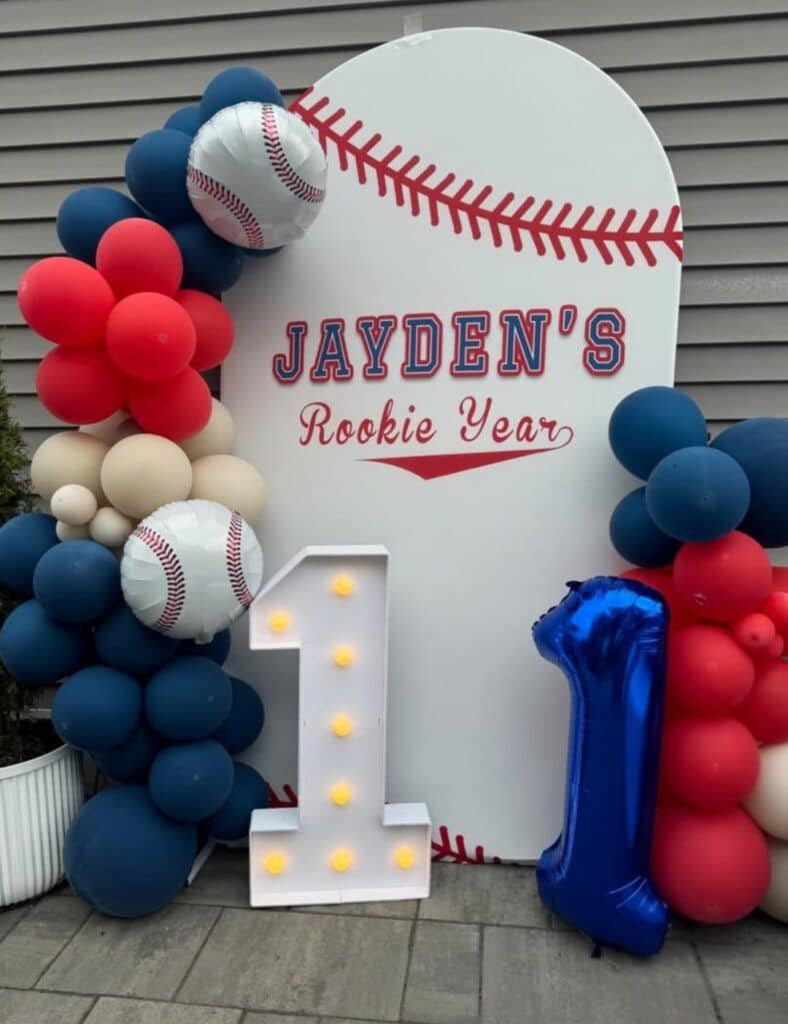Theme it with red blue and white, and add some baseball details to complete the theme.