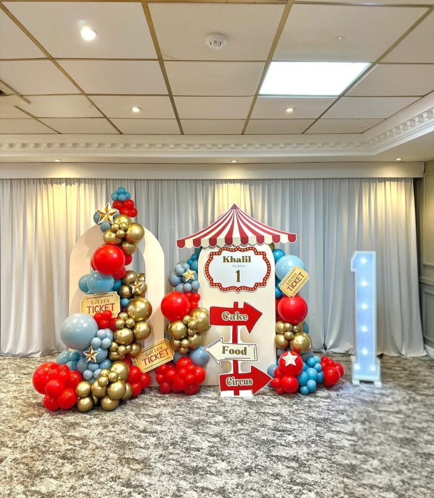 There’s so much attention to detail here with the signs, balloon arch, number 1 light and red top to complete what would look fab as a backdrop for photos during the day.