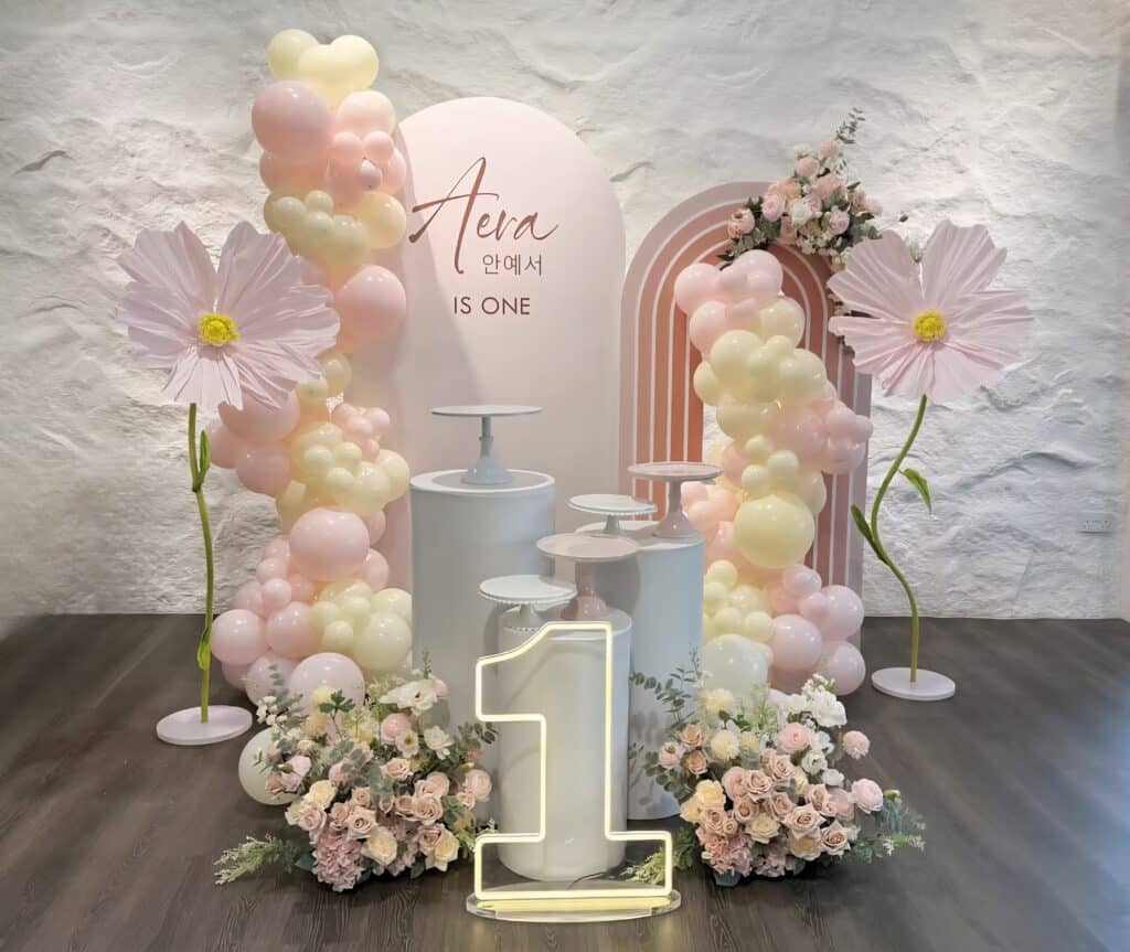 A lovely idea if you have a spring baby. Add a light up number 1 for added sparkle, it will pop in all of your photos from the day too.