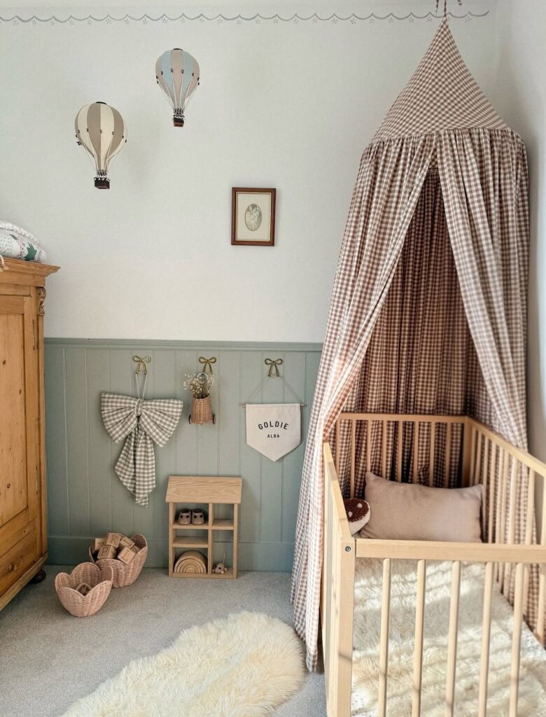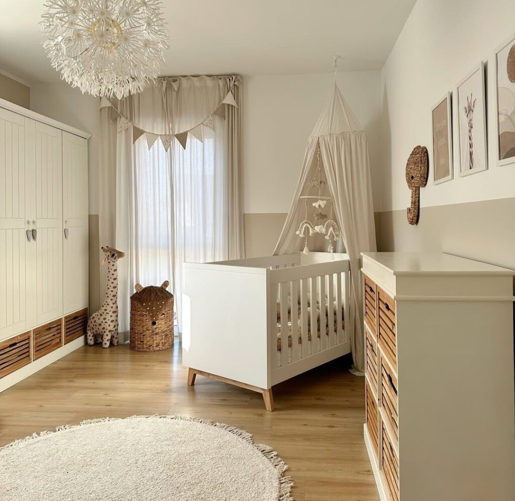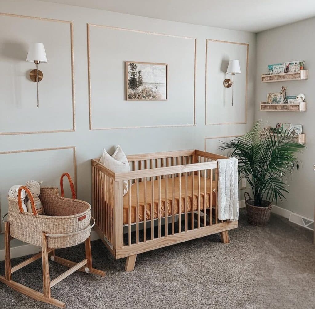 If you have a neutral base in your nursery, introduce some natural warmth with natural elements. This includes materials such as wood, rattan, linen and wicker.