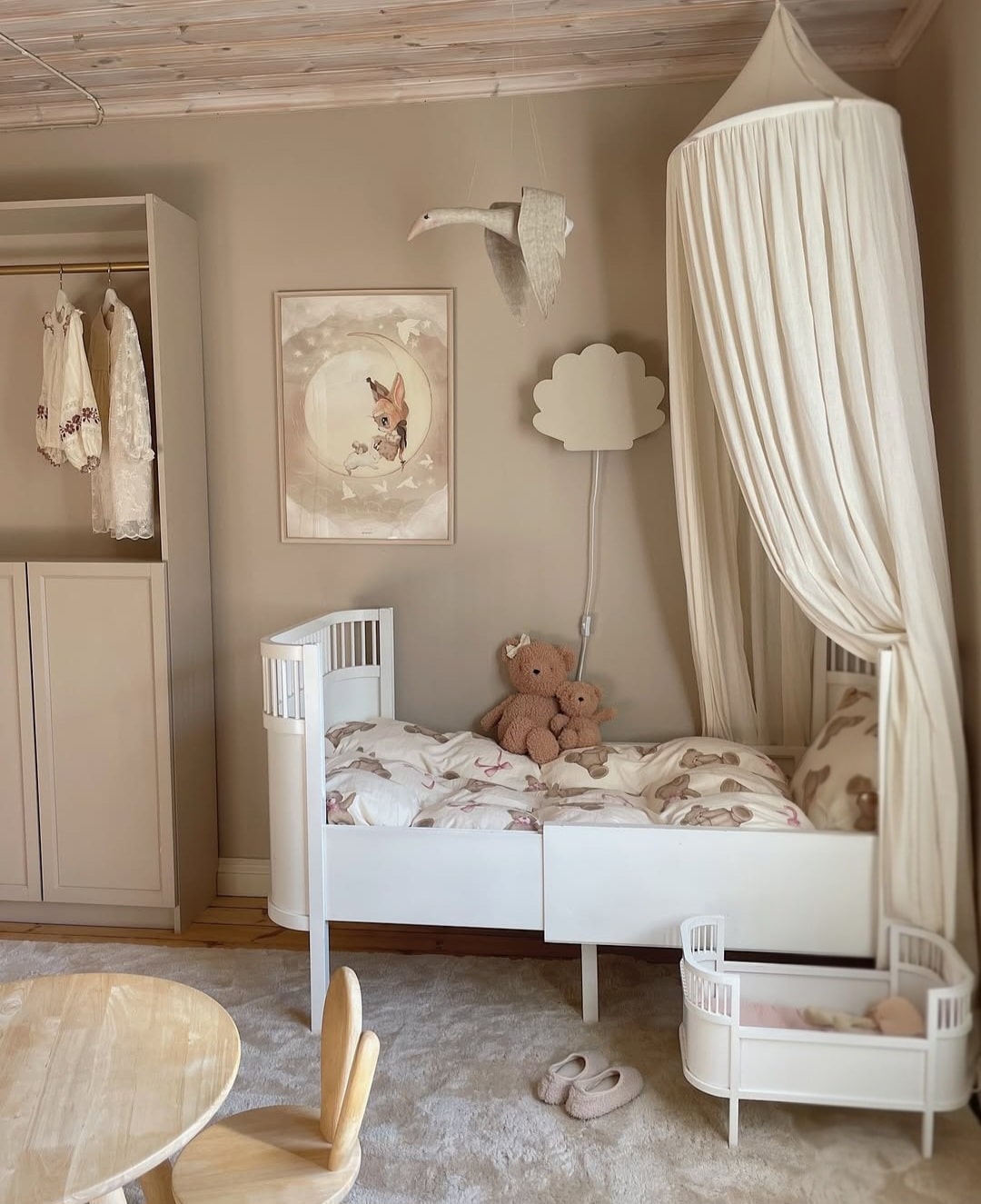 A traditional, understated neutral will bring a touch of sophistication to your baby girls room, and if your interior is styled in a similar way, it will help all of the rooms to connect and speak with one another.