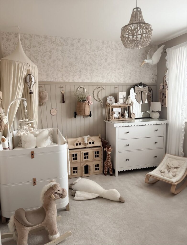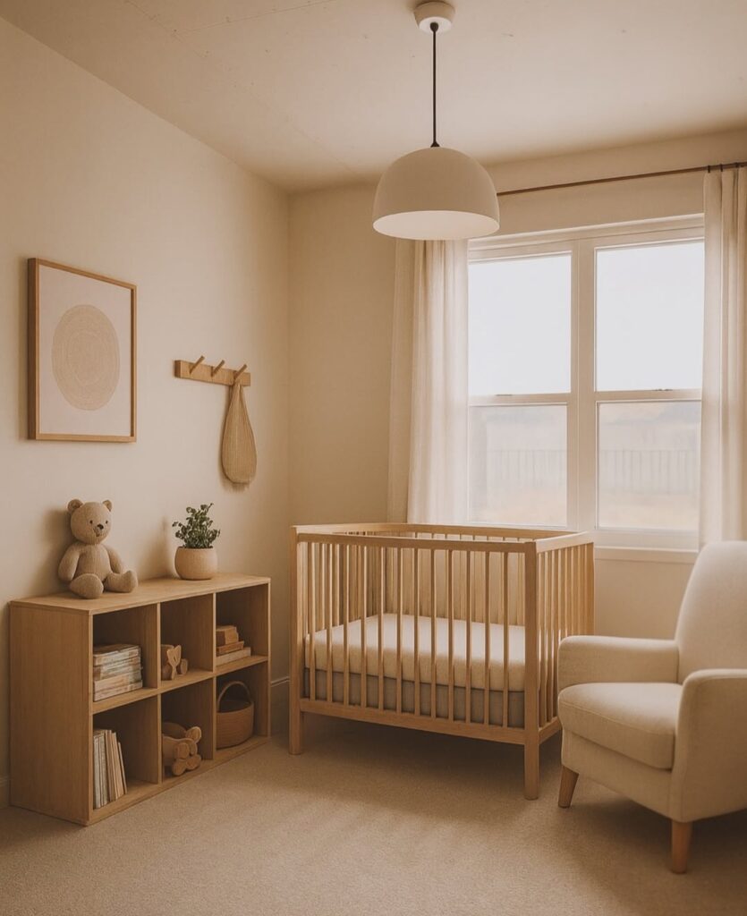 Warm taupes, sandy beiges or even elevated greys are wonderful options that are warm and ideally positioned in any nursery, no matter the aspect of the room.